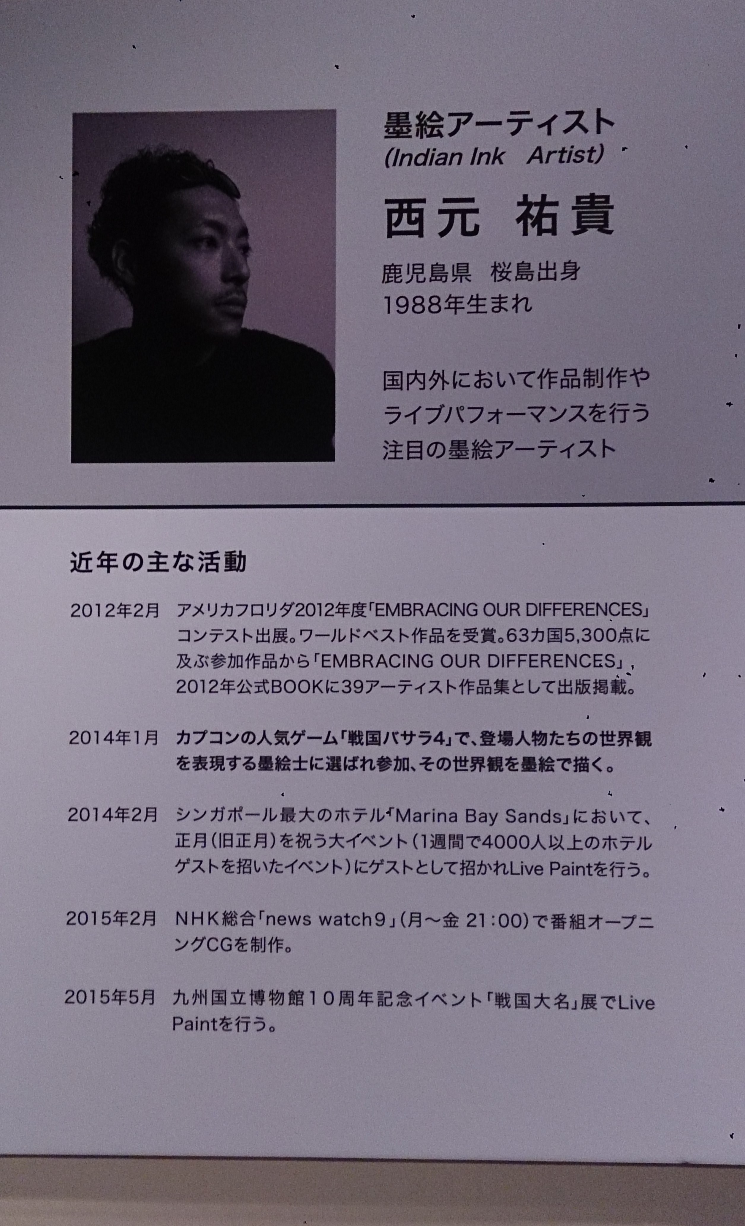 全後小林紗近の日記や落書きを載せてます。PAGE | 21 20 18 17 16 14 13 12 11 10 9 | ADMIN | WRITE 2015.07.20 Mon 19:35:15 戦国図鑑-Cool Basara Style-暑いのが苦手な私ですが・・・BASARAのためならこれくらいどうってことねぇや!! 写真撮ってきたので載せたいと思います。 カメラの傷が映り込んでいます・・・すみません・゚・(ノД`;)・゚・ まずは伊達さんがお出迎え。ありがとうございます!! 暑い中お疲れ様です!! そして大きな・・・垂れ幕?看板?・・・とにかくかっこよい なかに入ると、正宗くんと幸村くんが!!かっわいい(=´▽`=) 博物館の人「等身大だから、並んで撮っちゃいな!!」 ・・・等身大なのか~。恥ずかしいので並んで撮ることはしませんでした(;´▽`) その横には みっつん・伊達さん・やっさん のパネルも!!これは等身大なのかな? 聞いておけばよかった・・・( ̄▽ ̄;)!! これは伊井直政さんの鎧だそうです (クリックすると拡大します) BASARAの墨絵の作者、西元さんという方なんですね。 ライブペイント・・・見てみたいです(´▽`) さて、メインの墨絵いってみよう!! まさか写真撮影OKだなんて、これはうれしい!! 信長様 ・・・骸かっこいい!!似合うなぁ~ 刑部 ちょうちょ!! 足利さん クジャクとは・・・豪華だ!! 松永さん 蜘蛛の模様が骸で不気味・・・ 鹿之介くん うん・・・鹿だ!! 直虎さん 勇ましさのなかに女性らしさ・・・みたいな?汗 忠勝 ガ〇ダムみたいな外見でとんぼ・・・かわいい 千利休 ふ・・・双子や・・・!!利休も戦っちゃうんですね。 家康 きたー!!BASARAのなかで一番好きです。好青年(*´∇`*) 日輪すげー!!からの・・・たぬき!!ちょこーんとかわいいたぬき!! 一番好きなのでアップもヽ(´▽`)/へへっ 明智さん 頭から蛇が出てる!!・・・気持ちわ(ry 天海様 戦うお坊さんですね。・・・ぶっきみだぁ マリアさん 私と同行してくれたAちゃんは、BASARAに詳しいわけではないのですが、マリアさ さんを気に入ったようで、かわいいと言っていました。 勝家さん う~んと、・・・これはなんだ?BASARA4やればわかるかな(←3までしかもってない 毛利 厳島神社の鳥居ですかね。・・・日輪!! アニキとよく喧嘩しているようですが・・・なんだかんだ言って仲いいんじゃあないかな アニキ 海賊!!て感じですね。 アニキは鶴ちゃんとの子供喧嘩がかわいいです。あと孫市とはどんな関係が!? こじゅ オールバックといったらこじゅですね!!いよっ!!ヤクザ顔!! かっこいいよ!!月夜の片倉くんかわいいよ!! 伊達さん 伊達さんといったら竜ですよね。独眼竜!! ゆっきー 羽が生えてる・・・おやかたさばぁ!!純粋な幸村かわいいです。 佐助 ・・・猿だ。佐助は実在したのか・・・それとも架空なのか・・・実在だったらいいですね~(´▽`) お館様 迫力のある虎ですね・・・さっすがお館様!!ビバ漢祭り!! 謙信様 これは・・・謙信様がよく言う毘沙門天ってヤツですかね。 かすが バラかな?よく振りまいてますもんねw 半兵衛様 天才軍師・・・城と人々かぁ 秀吉様 ひょうたんと日本・・・天下統一を意味しているんでしょうか。 三成 これは・・・鷹?鷲?・・・ハジビロコウ? 左近くん 花札がかっこいいです。 賭け事はほどほどにしないとね~(;´▽`A 犬千代様 前田夫婦かわいいです。あれは爆発しなくていいわ。 末永くお幸せに(*´ワ`*) まつさん BASARAの女性キャラではまつさんが、一番好きです。 一緒に来たAちゃんもかわいいとアップで撮っていましたヽ(=´▽`=)ノ 慶次 枝垂桜!! 慶次は桜が似合いますね~ 慶次だけなんかセットが少し豪華な気が・・・下の小さい障子のせいか 又兵衛 またべー!!家康と同じくらい好きです。あ~でも家康より・・・だめだ 決められん 墨絵は以上です。お市さんとか無かったなぁ・・・残念ですo(TヘTo) クゥ 鎧も少しありました!!え~右から 家康 伊達さん 三成だそうです!! どれもかっこいいけど重そうだー 特別展示室は以上です。 たくさんあって見ごたえあったー(゚▽゚*) 特別展示以外の物も見てきました。 お館様や謙信様、北条のじいちゃんの鎧や刀、手紙などいろいろあって楽しかったです。 BASARAファンの方なのか、女性が多かった気がします。人も多すぎず少なすぎず、いい具合にいました。人ごみが苦手なので助かりました(´ ▽`) =3 そして最後の締め!!館内に入って目の前にあったものなのですが・・・ お~仙台にある伊達さんかな?写真撮っておこーう パシッ(シャッター音) ・・・ん? 仙台の・・・伊達さん・・・か? よくみると・・・なんとBASARAの伊達さんではないか!! 歴史上の普通の(普通のってなんだ)伊達さんかと思ってた!!すっげぇ!!かっけぇ!! すっげ~ 伊達スタイルだ・・・ 後ろからってあまり見ないですよね。 コラボグッズは残念ながらありませんでした・・・(´Д`|||) でも楽しめたのでよかったです。帰りに友人に会ってビックリなんてこともありました。 高校野球の応援に行ったんだそうです。暑い中お疲れ様だー。 特別展は8月30日までやっているので、夏休みを利用して来てみてはいかがでしょ