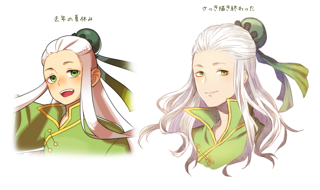 全後小林紗近の日記や落書きを載せてます。PAGE | 1 2 3 4 5 6 7 | ADMIN | WRITE 2018.01.02 Tue 23:59:34 あけましておめでとうございます~!!みなさま新年あけましておめでとうございます~!! 今年もおでこな1年にしてまいります!!何卒よろしくお願いいたします~!! どひゃー!!また前回の更新から2ヶ月たっている・・・ 去年は多忙で年賀状は描かない予定だったのですが親にしつこく言われ続けたため折れて描くことに・・・『来年は描かないからな!!』と言ってはおきましたが、自分用に描けばそれを使われそう(;´`) 今年は時間をみつけて『Tumblr』をちょっとのぞいてみたいかなと思っております~ そちらのほうが見やすそう・・・? 愛さん うぉ~エンマ大王とぬらりですね!! 私も描きたいです・・・気長にお待ちを!! 実写版あたりから映画観られてないので観たいなぁ・・・ PR 2017.10.21 Sat 20:57:10 絵に変化がでてきましたぞ!!おわー!!前回の更新からもう2ヶ月もたっていました!! ぜんぜん気づかなかった・・・あっというまに10月も後半ですね~はやい~ そして気づいたら12月なんだろうな・・・今年のガキ使は何かな~!! はい!!9月よりインターンに参加させていただき絵に変化が出てまいりました!! さっき描き終わったと描いてありますが今日ではなく12日に描き終わったものです~ 普段の絵といわれると塗りや絵柄など左のような感じになりますね。 右は美人要素が入ってるといいな!! こちらは今日できたてほやほやの兵次~!! らくがきのノリでかくとお顔のみになってしまう・・・ 自分でデザインしておいてなんですが前髪3本がホント謎です・・・ 中学の頃はアホ毛的なものにハマっていたのかな? ここ最近急に冷え込みましたのでみなさまお体に気を付けて!! 秋どこいったー!! 2017.08.26 Sat 16:25:18 1年前と比較2017.07.29 Sat 20:16:20 ヒロアカ!!2017.05.07 Sun 13:20:22 最近の~Twitterにあげていた絵をぽいぽい~ 読書アクルくん~この子はブログでは紹介してない・・・ですよね? 細かい設定を付けてあげたほうがより愛着がわくと思うのですが考えるのが大の苦手で・・・へへへ精進致します(;´▽`A`` 兵風~!!かわいいを目指しました!!でこは良いぞ!! ロンさんー!!!!母に見せたら『らしくない』と言われてしまいました(^▽^;) 自分でもそう思います~こういう絵はめったに描かないんじゃないかなぁ